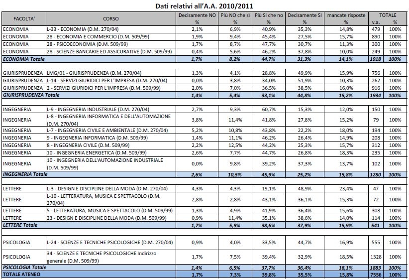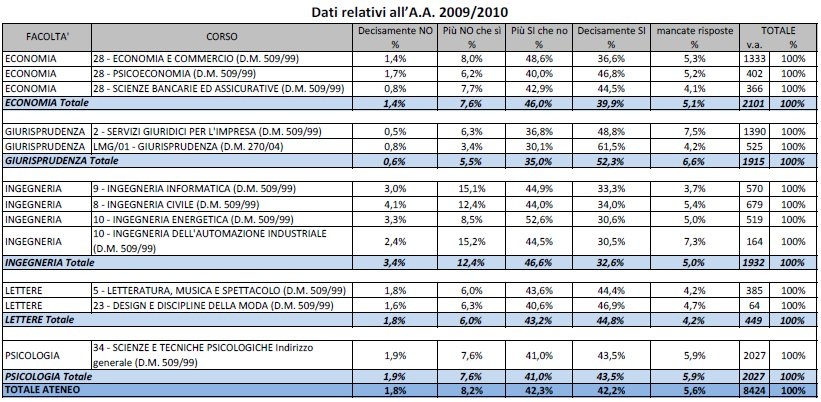 Questionari sugli insegnamenti (scheda 1 bis): raccolgono le opinioni degli studenti relative agli insegnamenti;