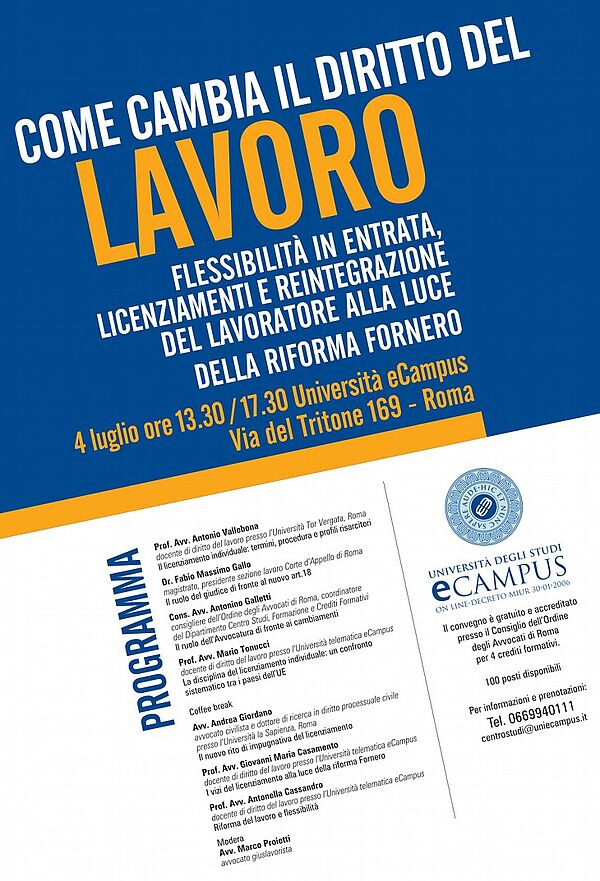Corso specialistico di diritto del lavoro sindacale e della previdenza sociale - V Edizione