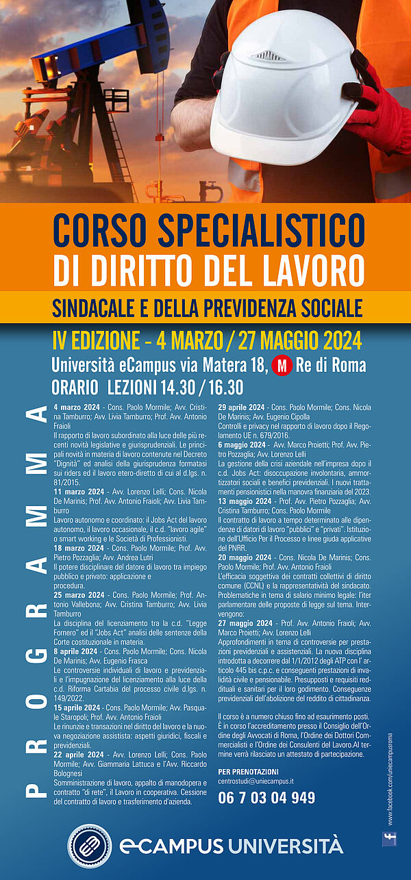 Corso specialistico di diritto del lavoro sindacale e della previdenza sociale - IV Edizione