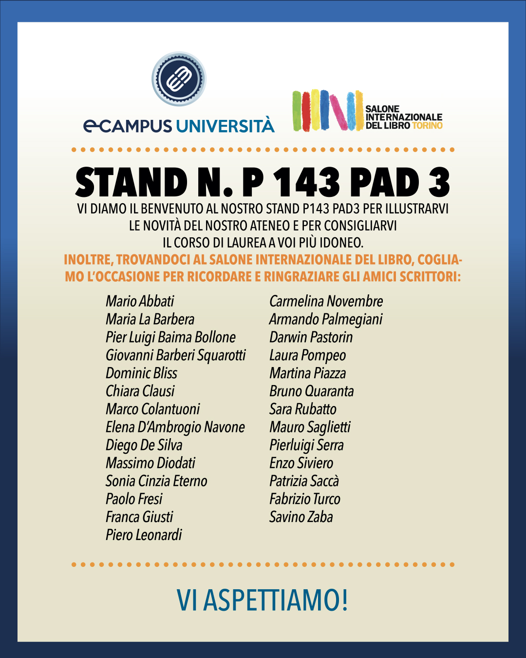 eCampus al salone internazionale del libro a Torino: stand N. P143 - PAD3