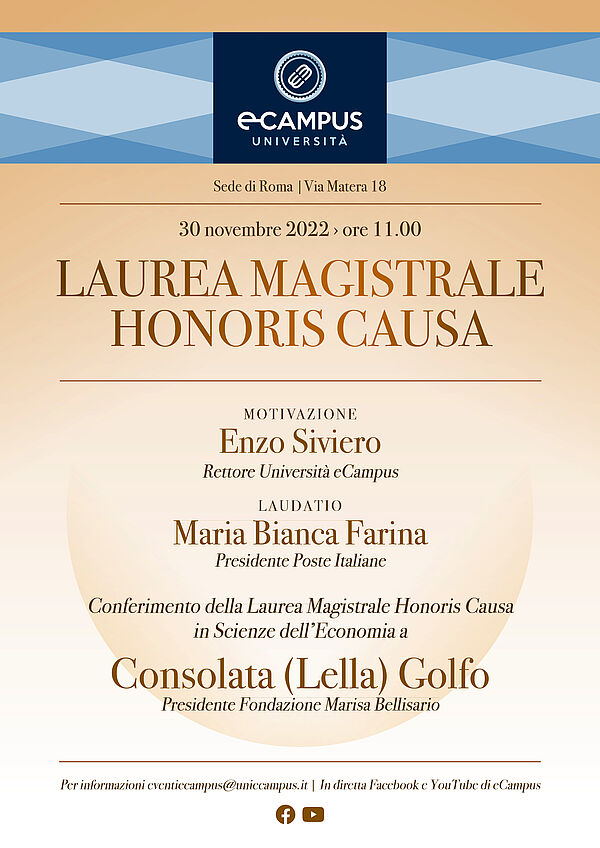 Ateneo Eventi Laurea magistrale honoris causa in scienze dell' economia a Consolata Lella Golfo presidente fondazione Marisa Bellisario