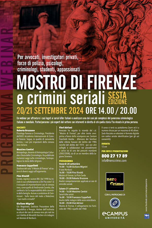 WEBINAR DI CRIMINOLOGIA - Mostro di Firenze e crimini seriali VI edizione