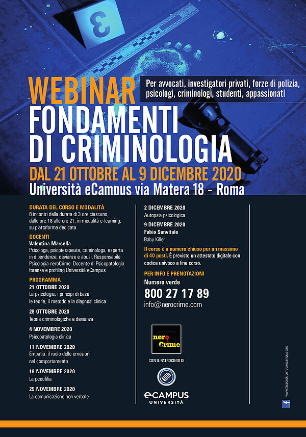 Corso in Scienze Forensi IX edizione in modalità Webinar