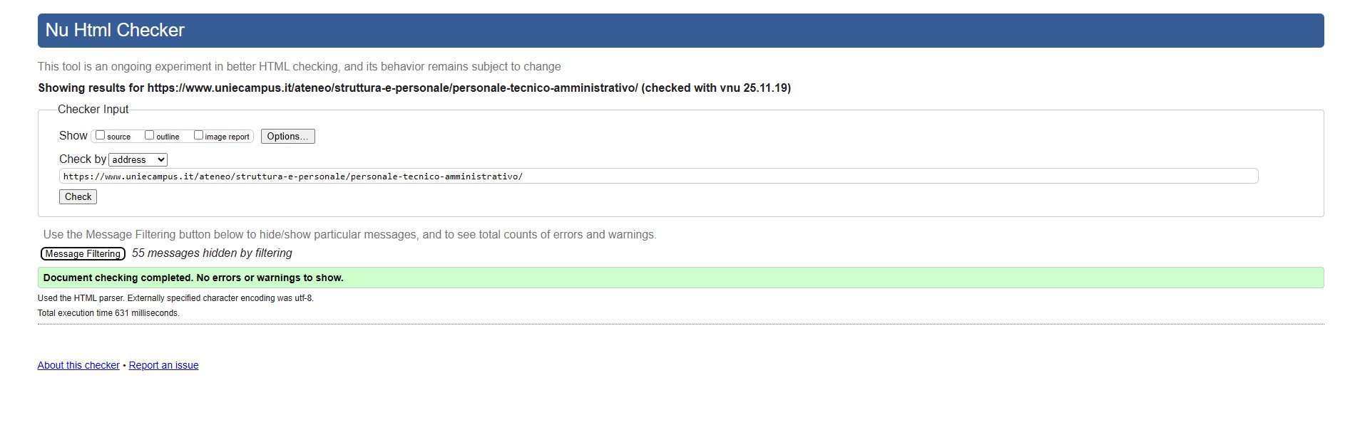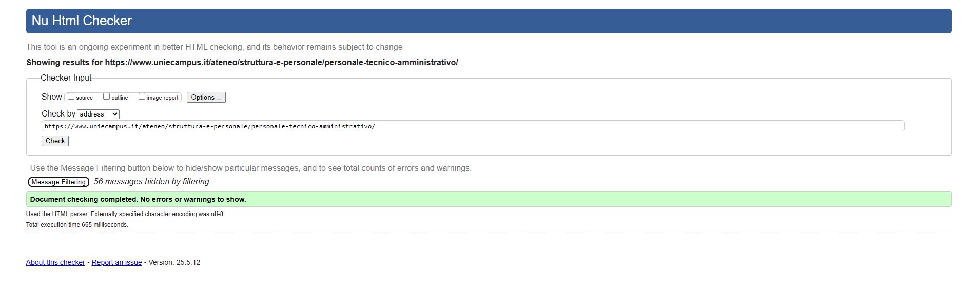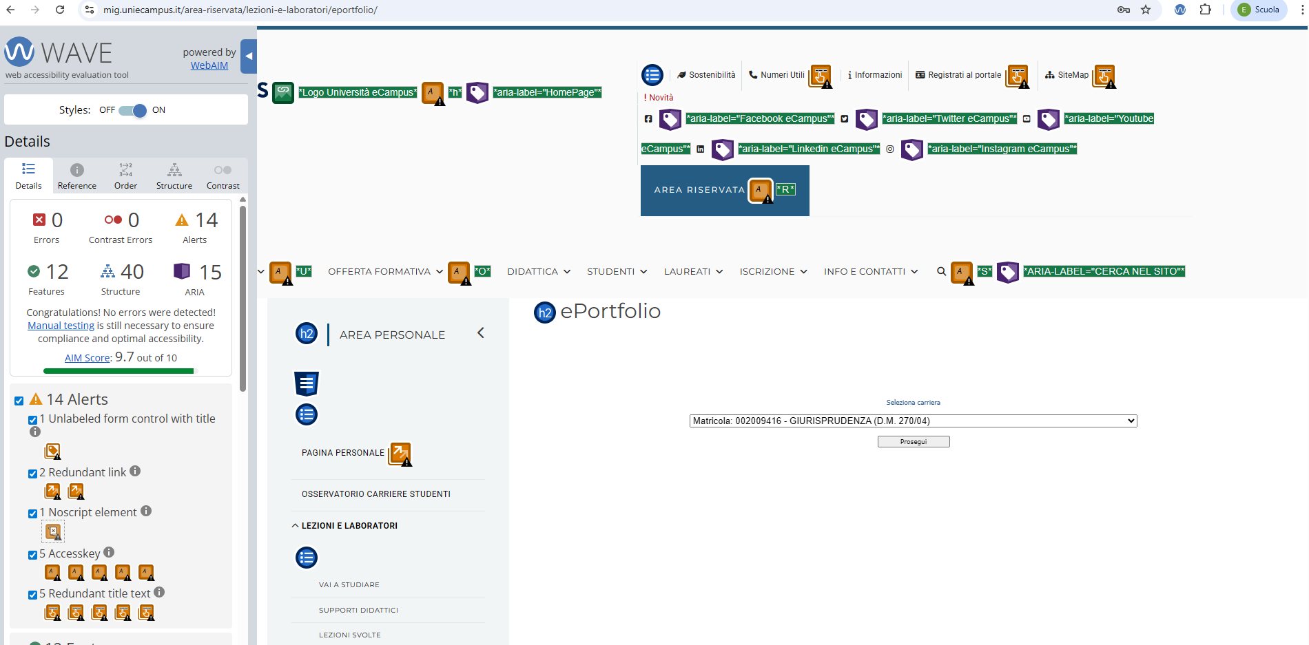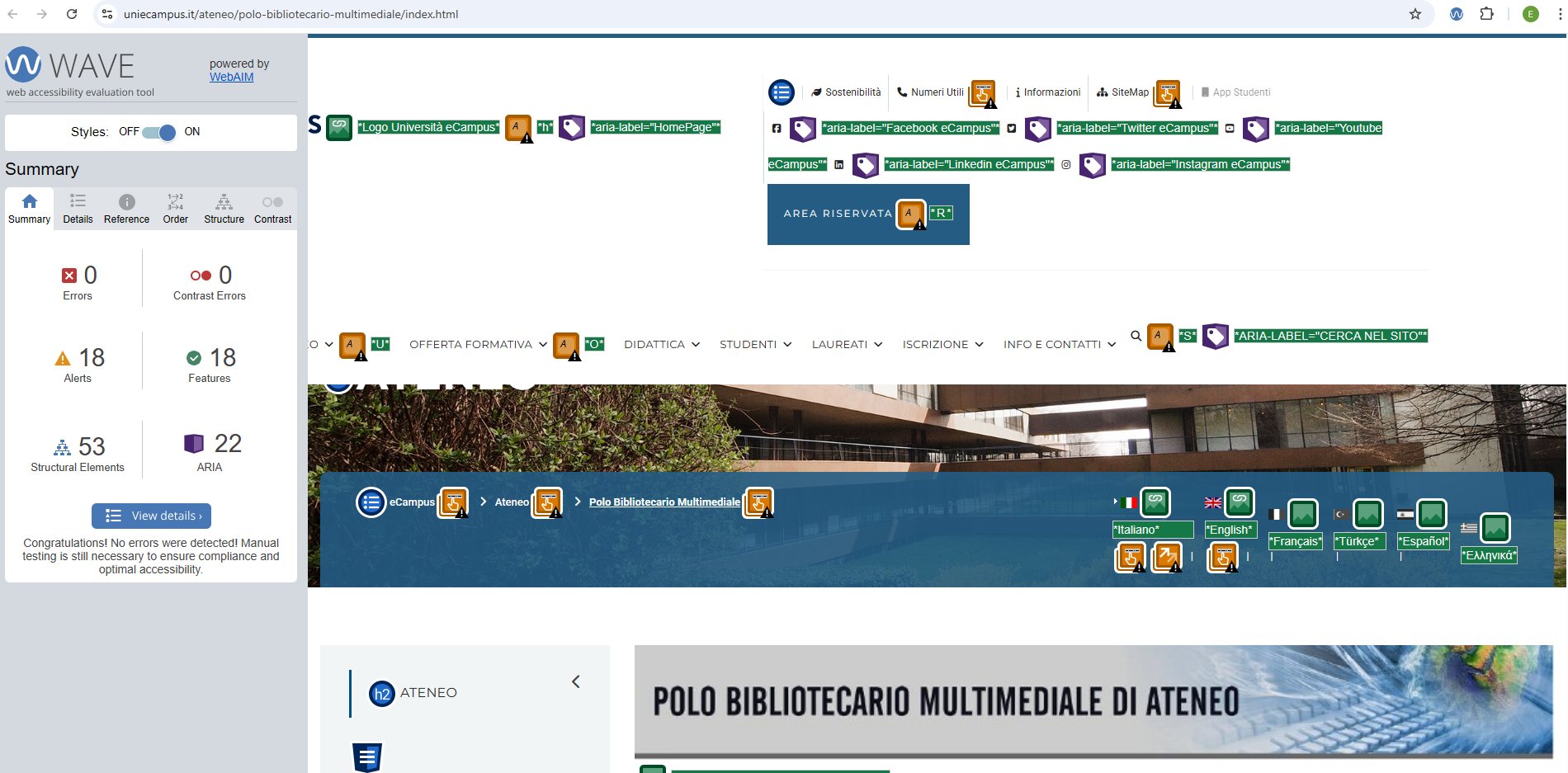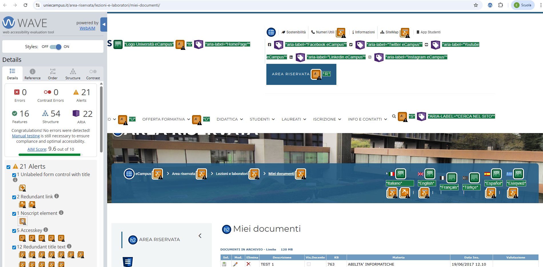 Periodicamente il portale viene sottoposto a test automatizzati di accessibilità e di usabilità (il portale è responsive, quindi fruibile anche da strumenti diversi dallo schermo del computer, quali tablet e smartphone), di cui si possono consultare di seguito i risultati.