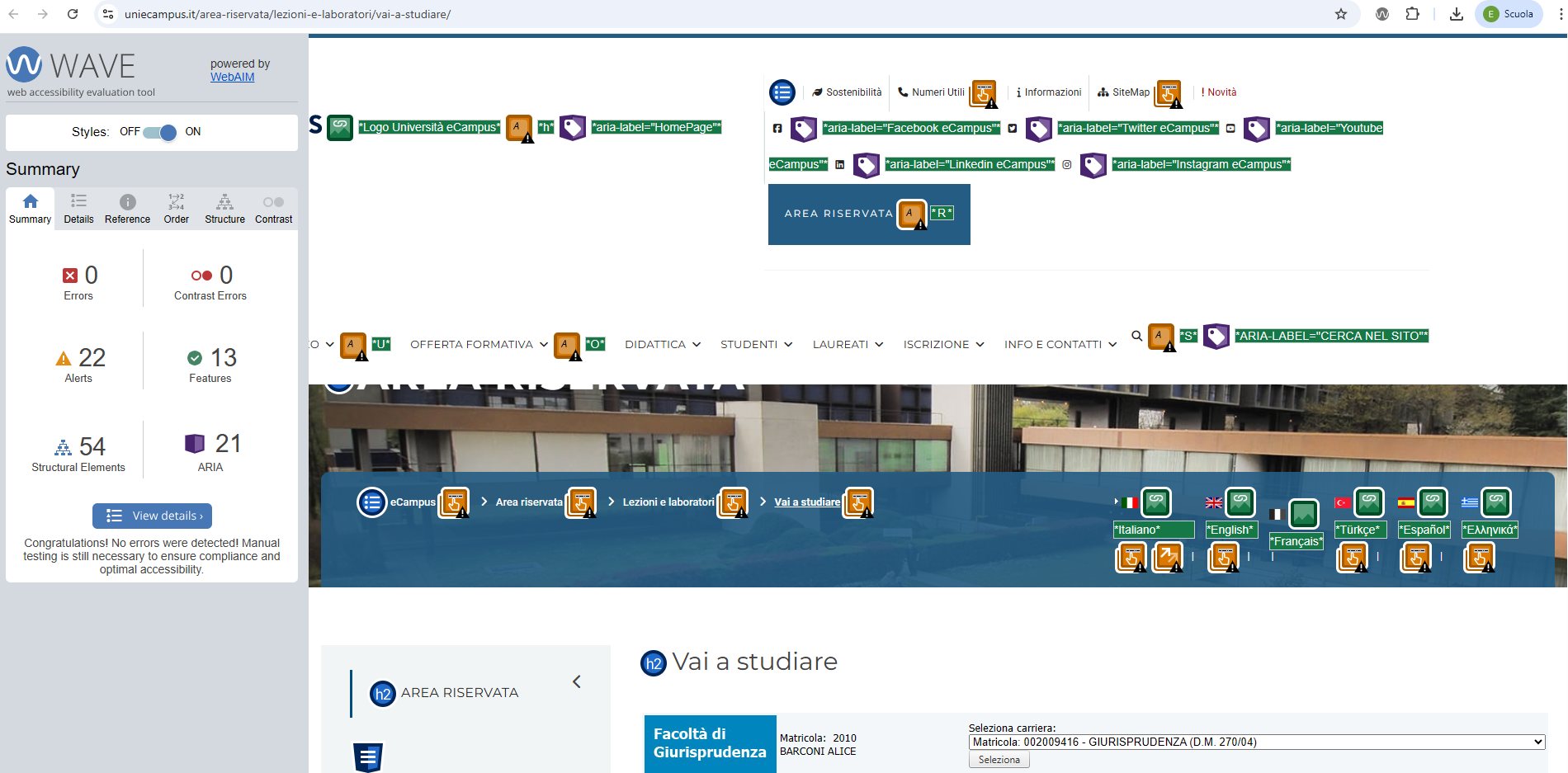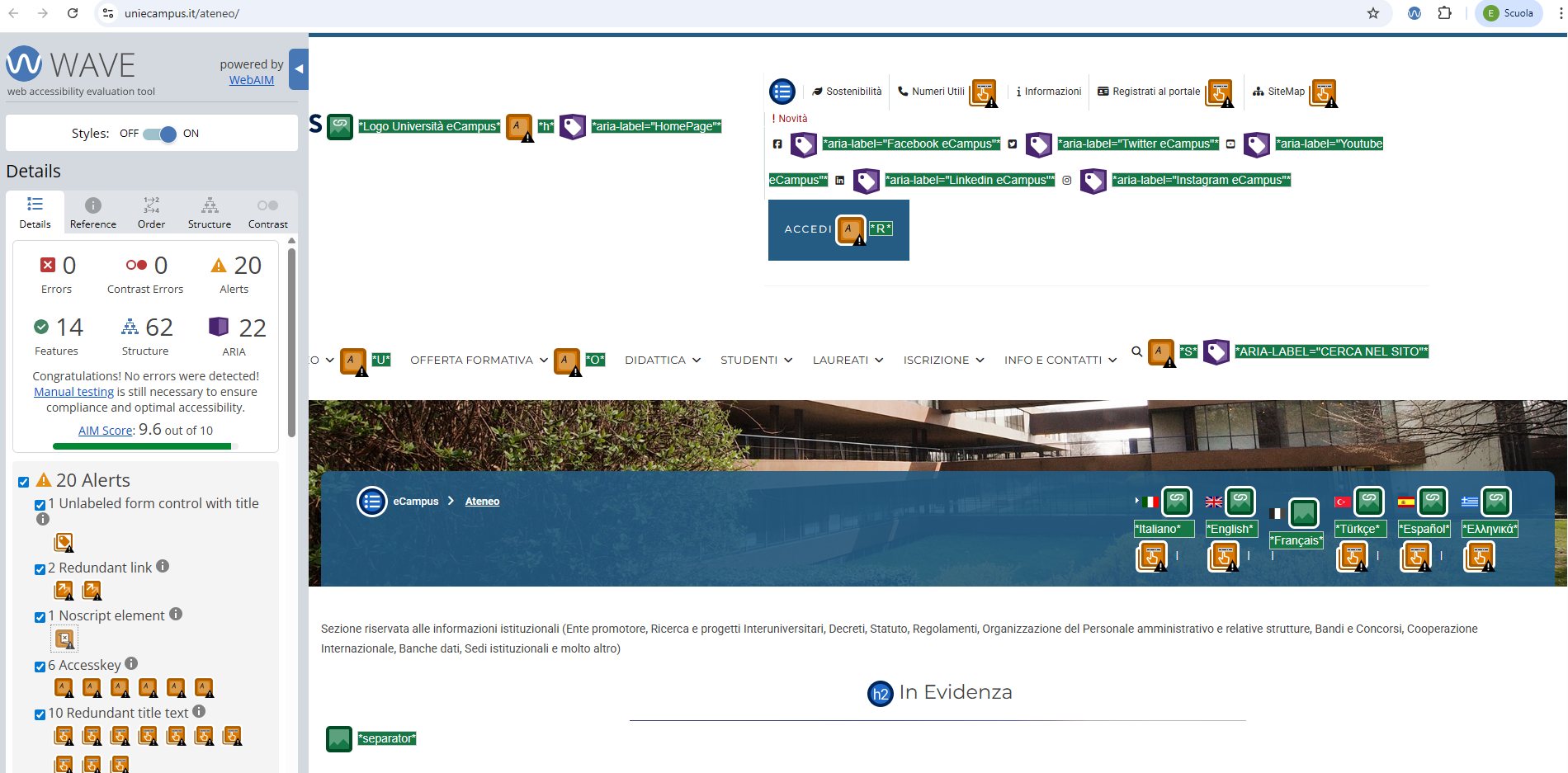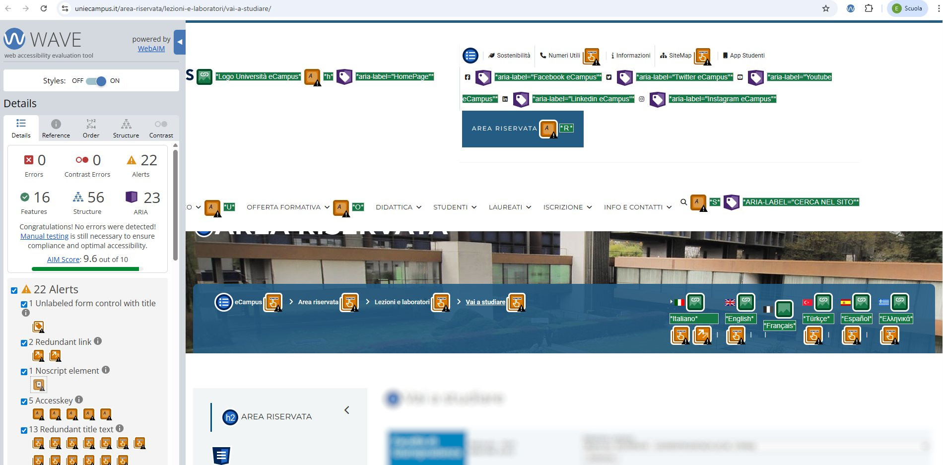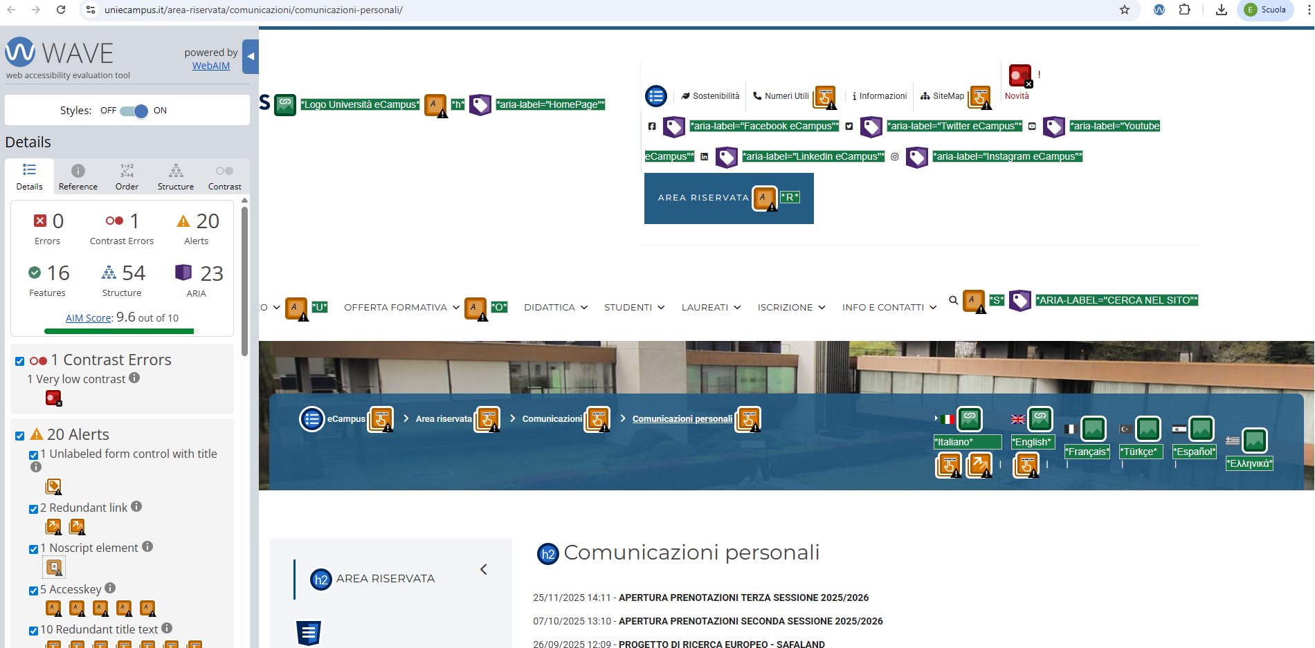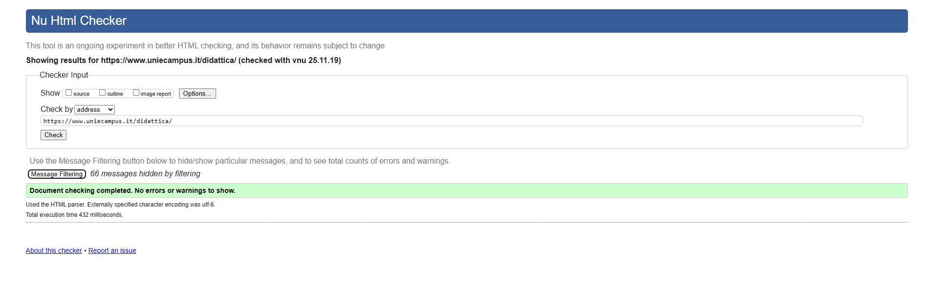 Periodicamente il portale viene sottoposto a test automatizzati di accessibilità e di usabilità (il portale è responsive, quindi fruibile anche da strumenti diversi dallo schermo del computer, quali tablet e smartphone), di cui si possono consultare di seguito i risultati.