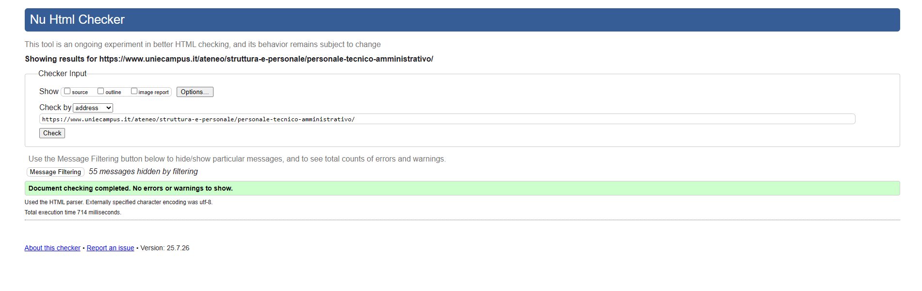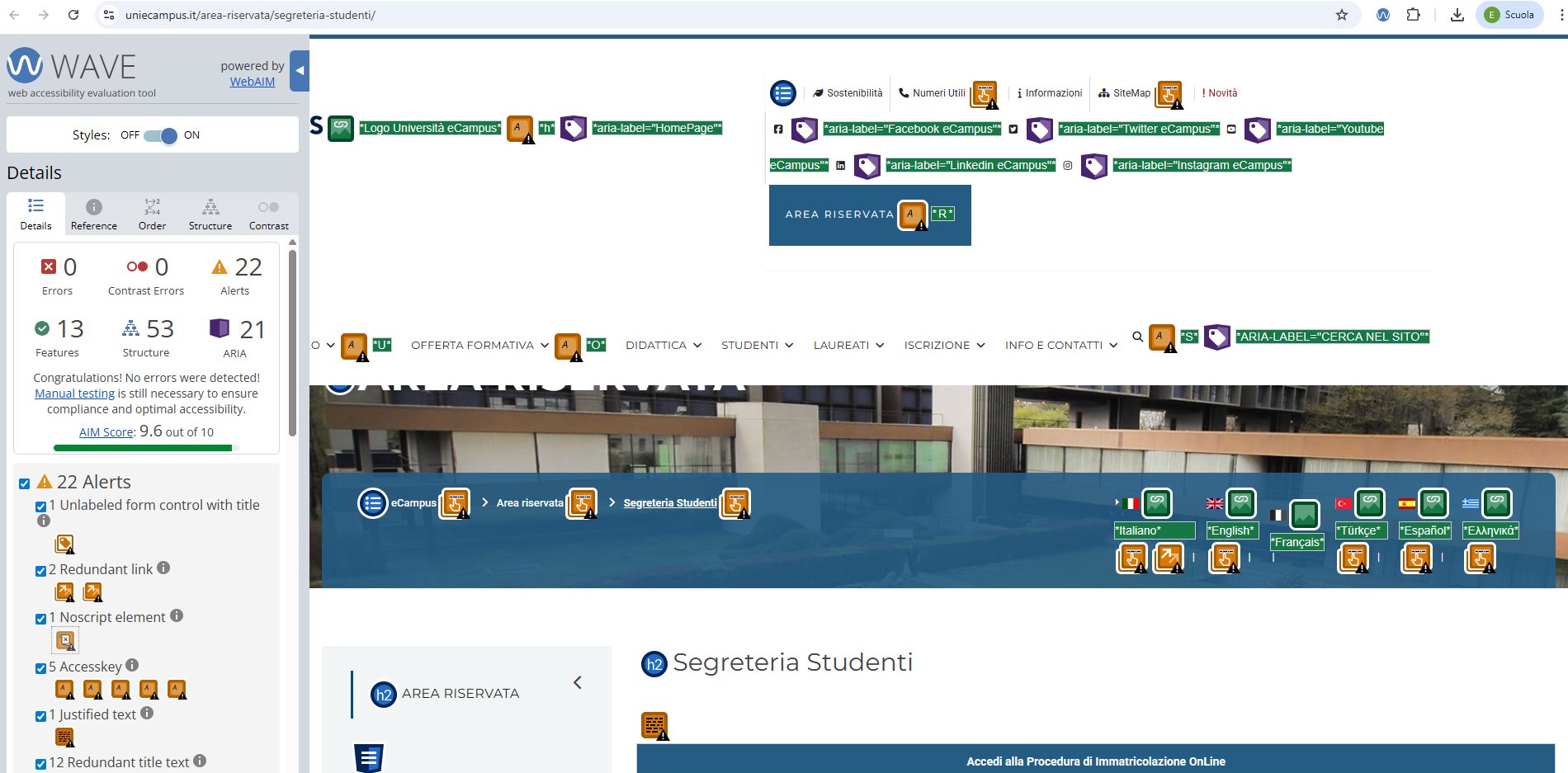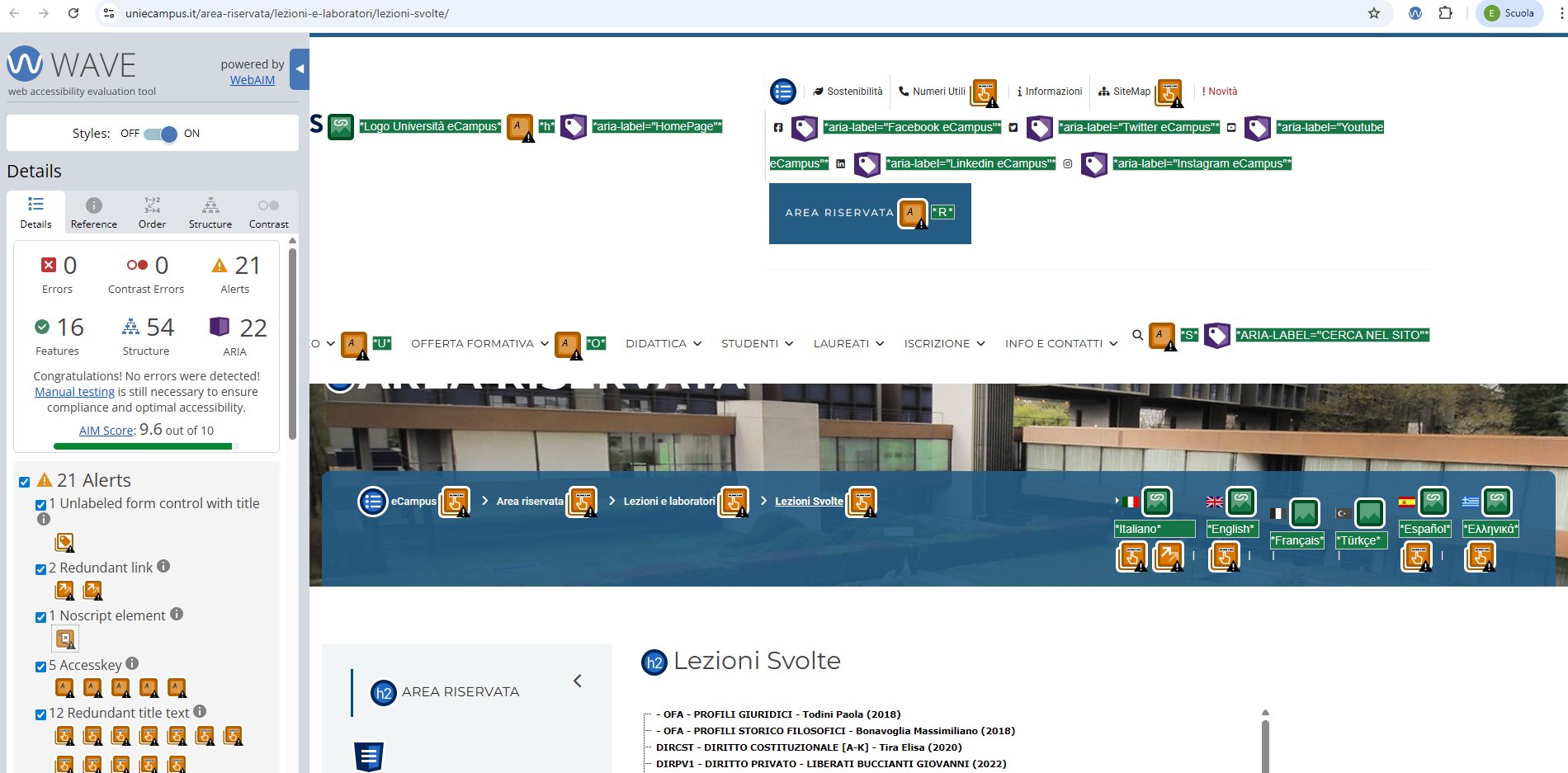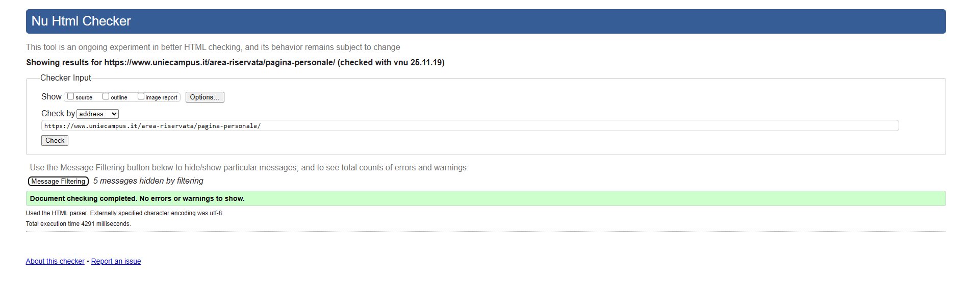 Periodicamente il portale viene sottoposto a test automatizzati di accessibilità e di usabilità (il portale è responsive, quindi fruibile anche da strumenti diversi dallo schermo del computer, quali tablet e smartphone), di cui si possono consultare di seguito i risultati.