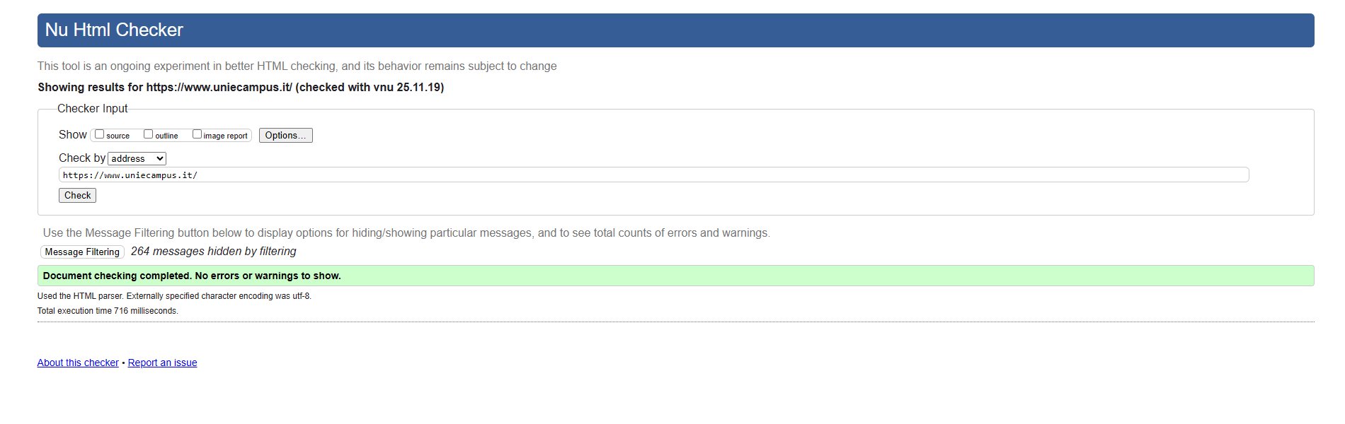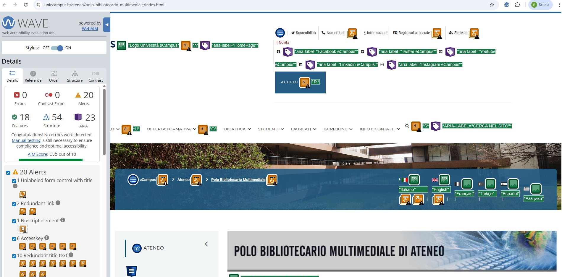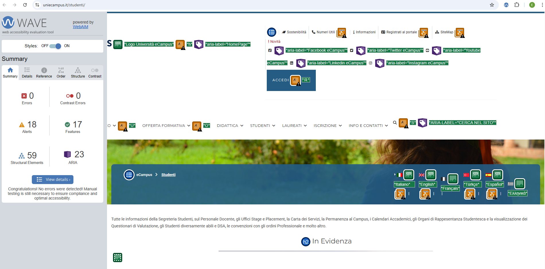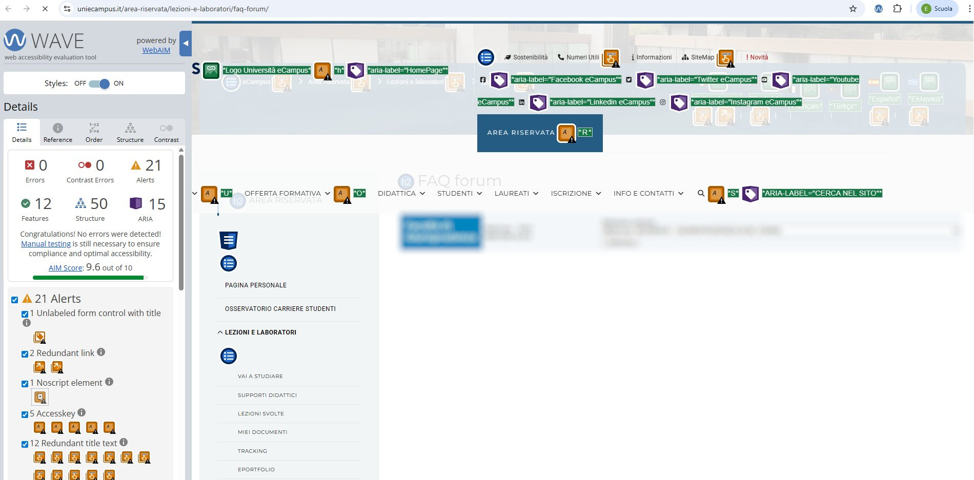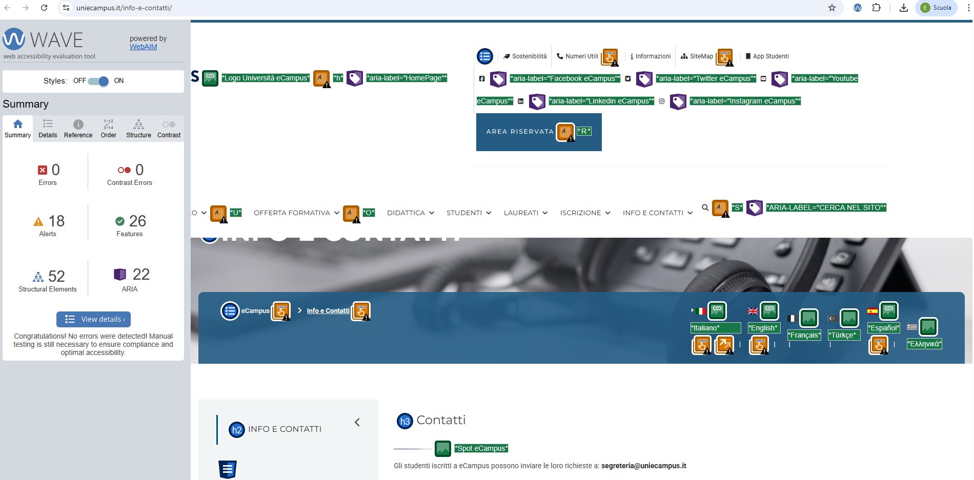 Periodicamente il portale viene sottoposto a test automatizzati di accessibilità e di usabilità (il portale è responsive, quindi fruibile anche da strumenti diversi dallo schermo del computer, quali tablet e smartphone), di cui si possono consultare di seguito i risultati.