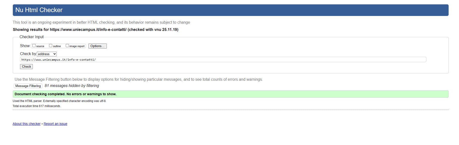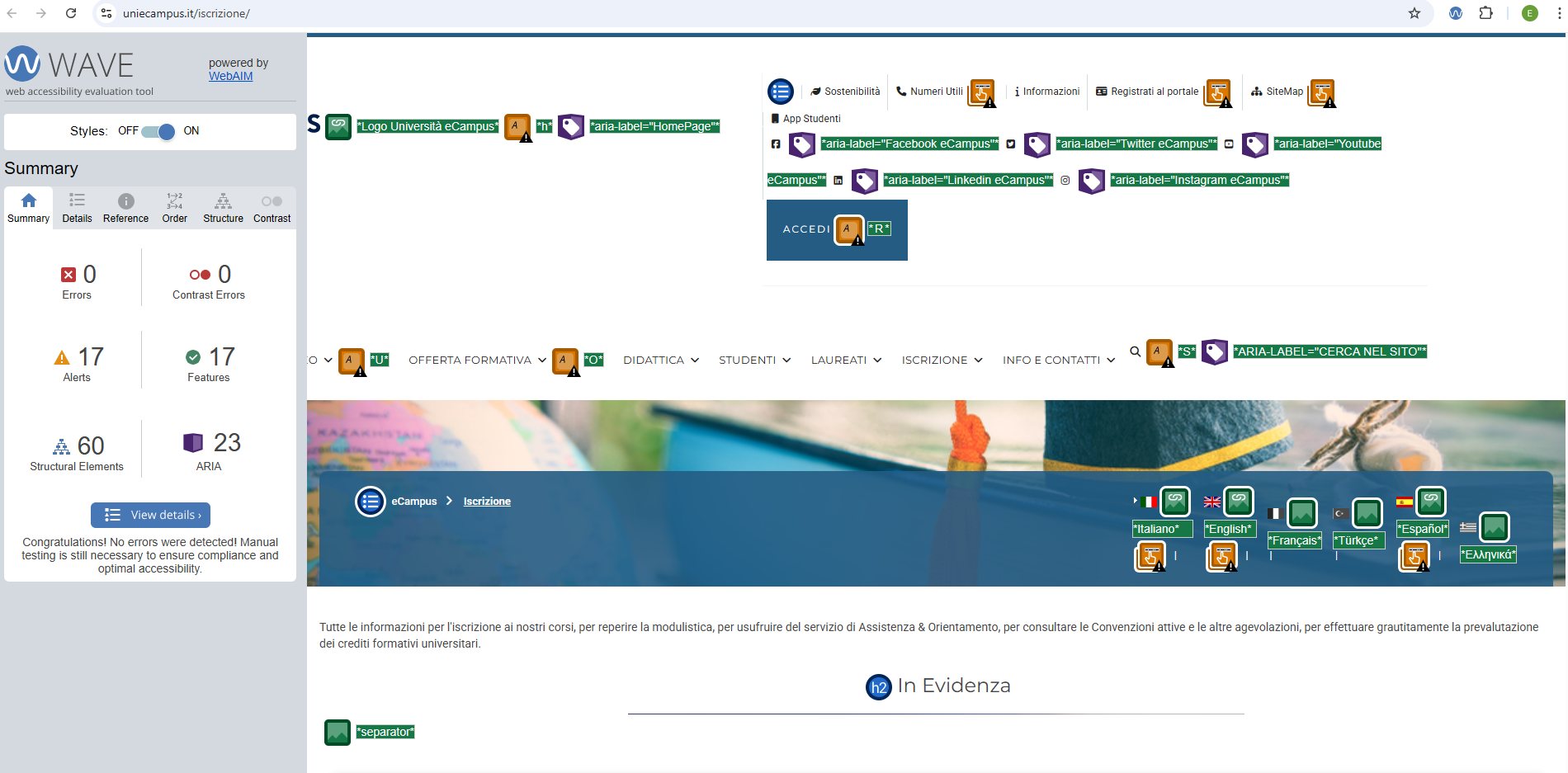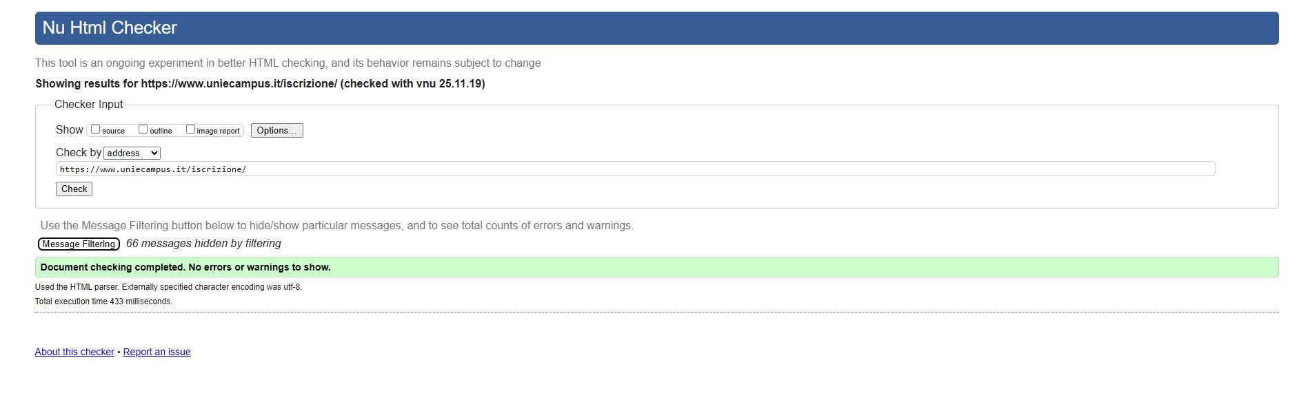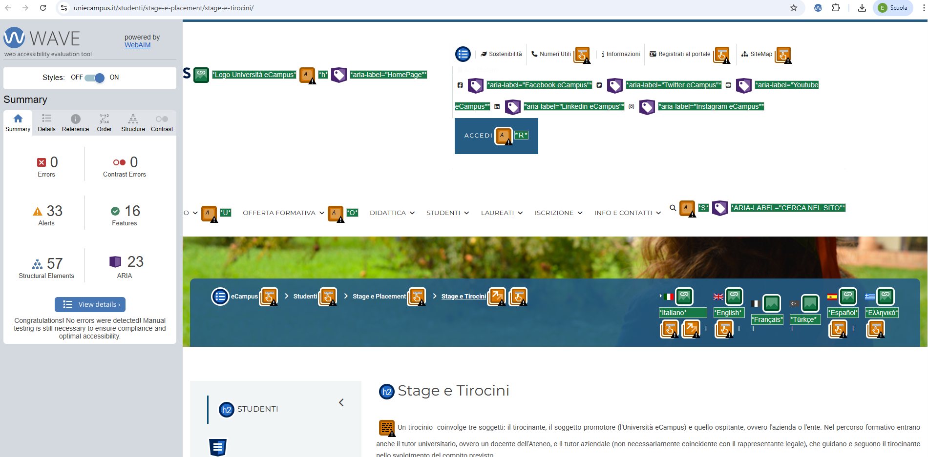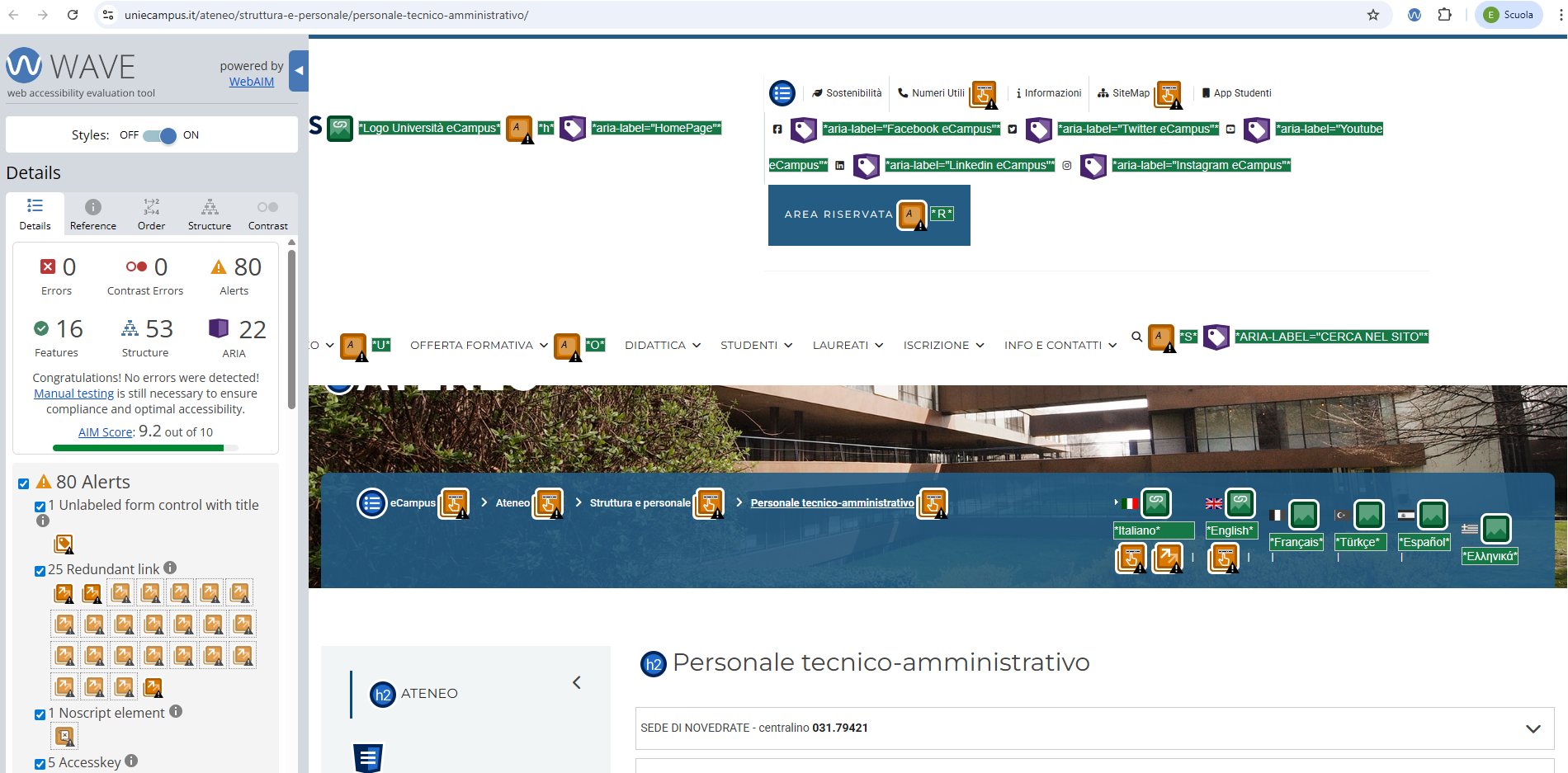 Periodicamente il portale viene sottoposto a test automatizzati di accessibilità e di usabilità (il portale è responsive, quindi fruibile anche da strumenti diversi dallo schermo del computer, quali tablet e smartphone), di cui si possono consultare di seguito i risultati.