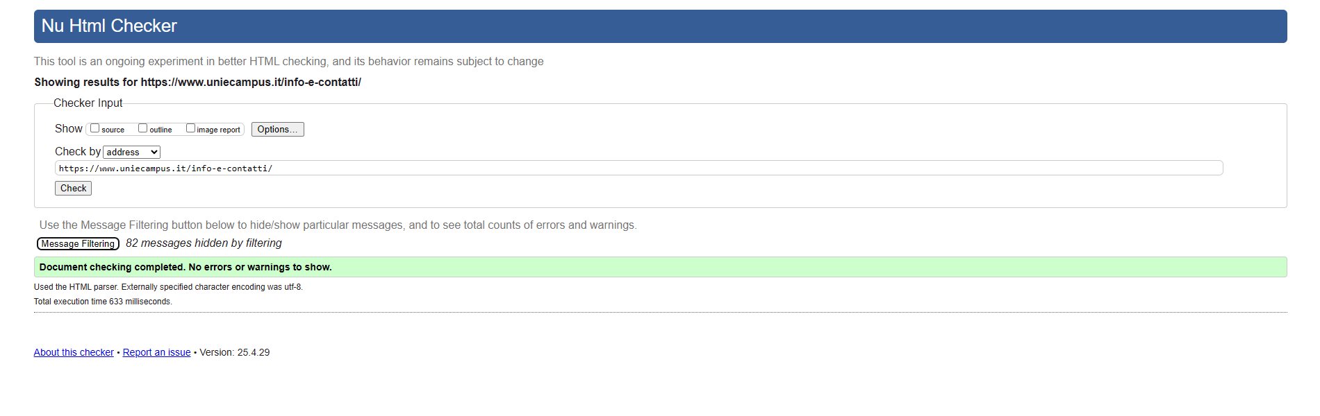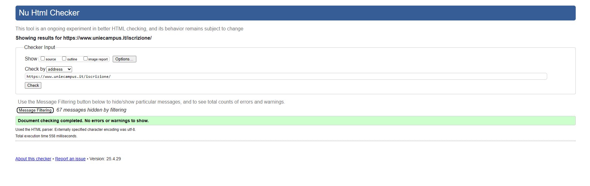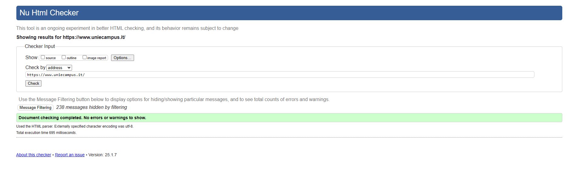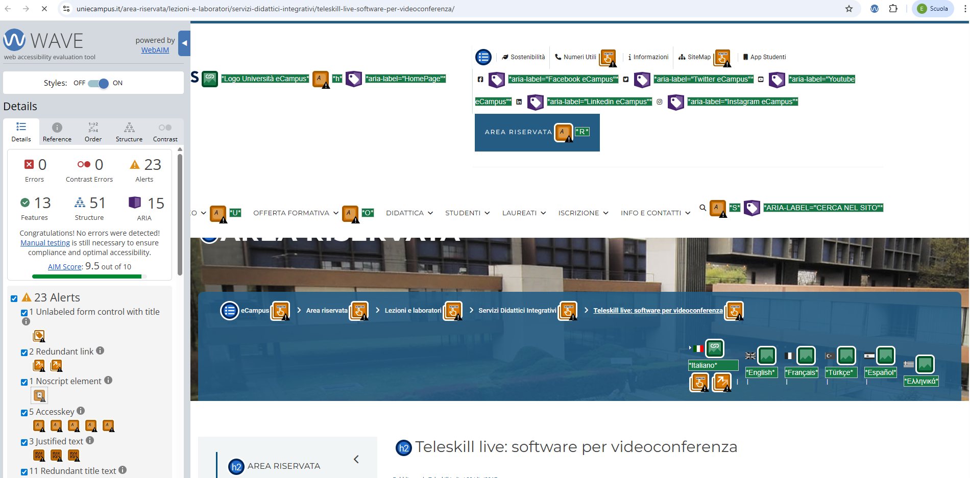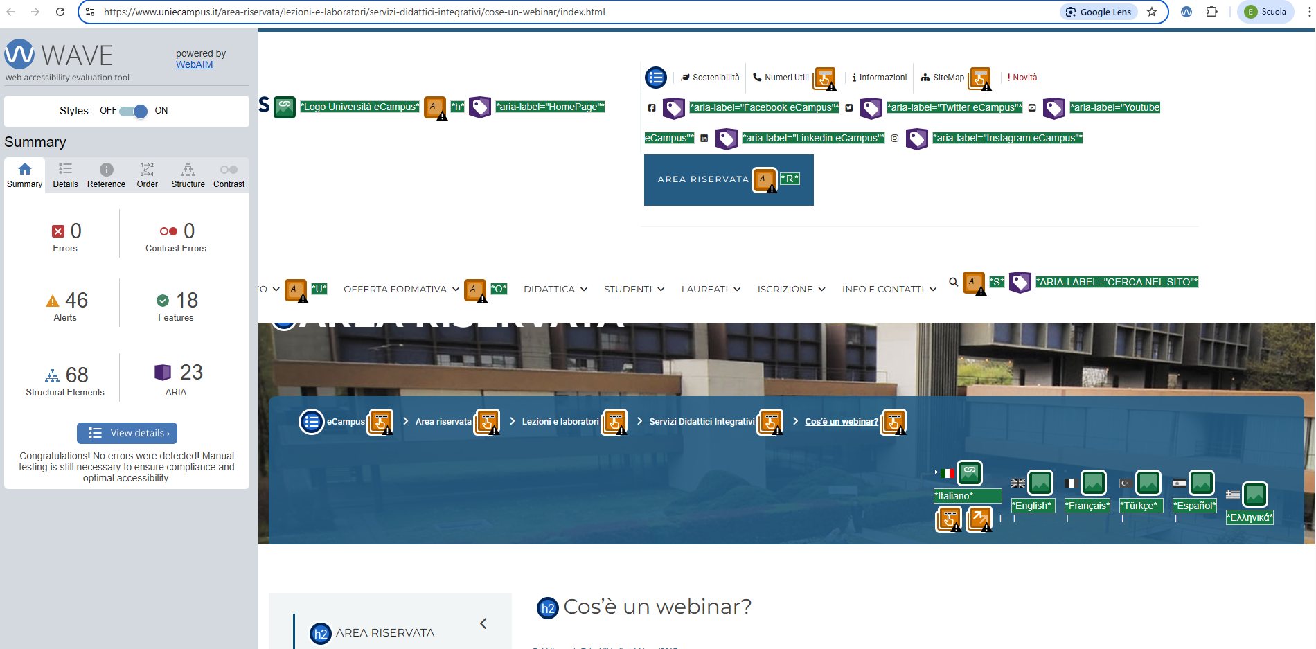 Periodicamente il portale viene sottoposto a test automatizzati di accessibilità e di usabilità (il portale è responsive, quindi fruibile anche da strumenti diversi dallo schermo del computer, quali tablet e smartphone), di cui si possono consultare di seguito i risultati.
