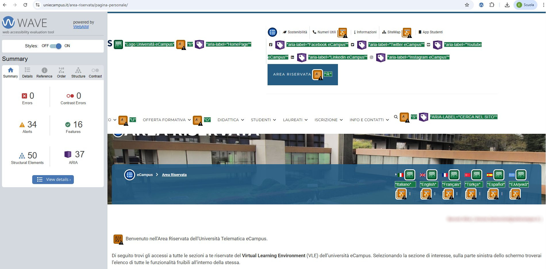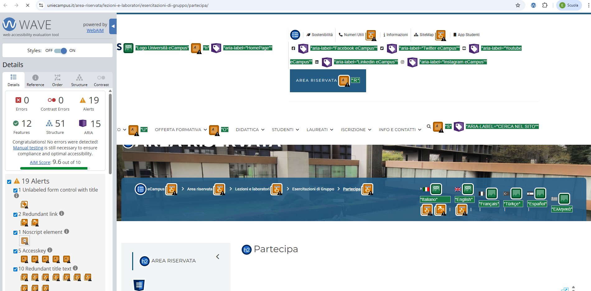 Nella valutazione del grado di accessibilità delle risorse facenti parte del portale sono state usate applicazioni di supporto (oggettivo) alla validazione, i risultati delle verifiche (soggettive) da parte di utenti interessati (SDA) e i contributi di personale qualificato in materia.