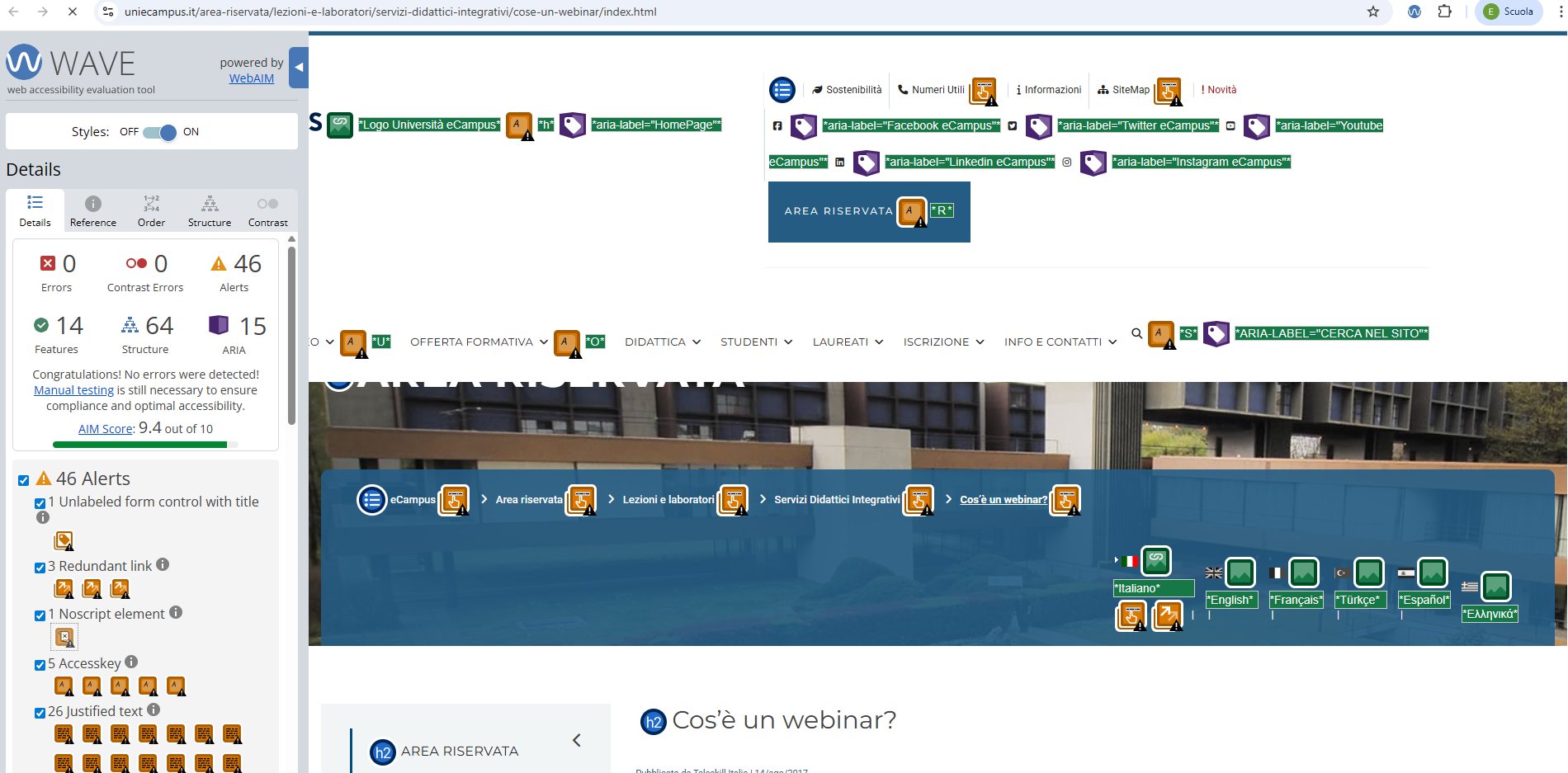 - Linee guida per l'accessibilità ai contenuti del Web versione 2.0 (WCAG 2.0): italiano, inglese