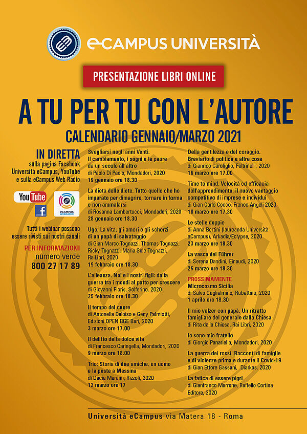 A tu per tu con l'autore, calendario Gennaio-Marzo 2021