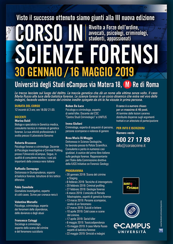 Corso in Scienze Forensi IX edizione in modalità Webinar