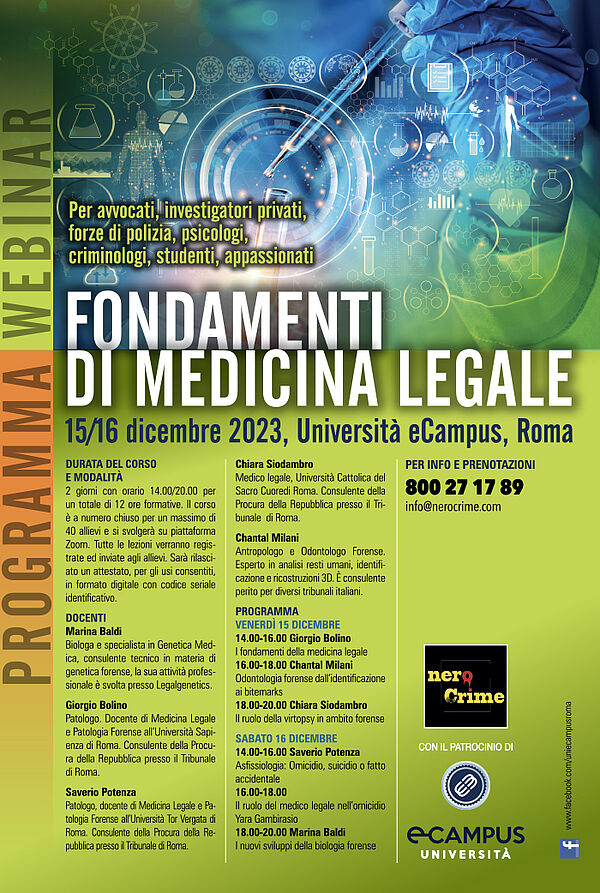 Corso in Scienze Forensi IX edizione in modalità Webinar