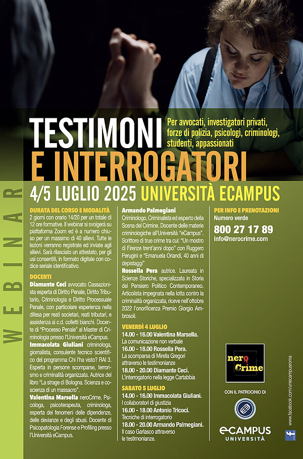 Corso in Scienze Forensi IX edizione in modalità Webinar
