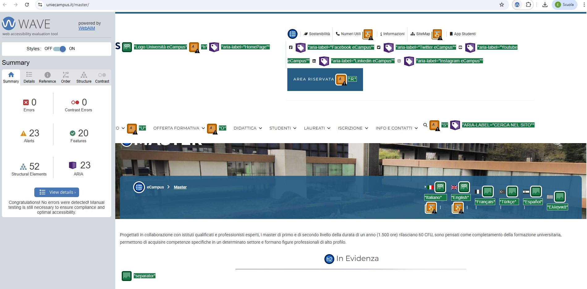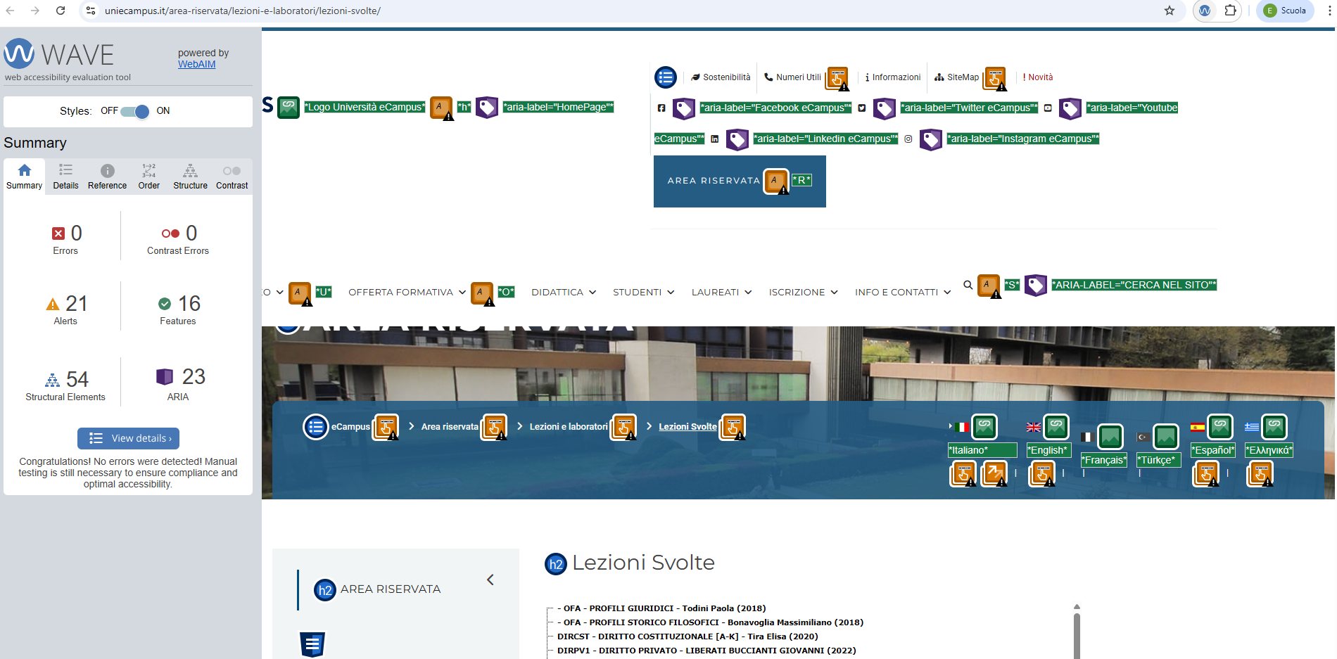 Periodicamente il portale viene sottoposto a test automatizzati di accessibilità e di usabilità (il portale è responsive, quindi fruibile anche da strumenti diversi dallo schermo del computer, quali tablet e smartphone), di cui si possono consultare di seguito i risultati.