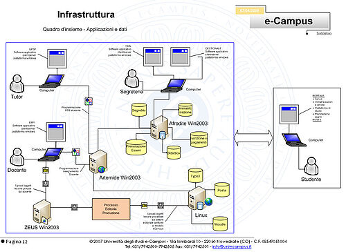 The eCampus University 'e-learning Service Centre', after an analysis of the services it has to perform and the following operational capacity of the e-learning infrastructure, established the fundamental features of the latter, in particular: