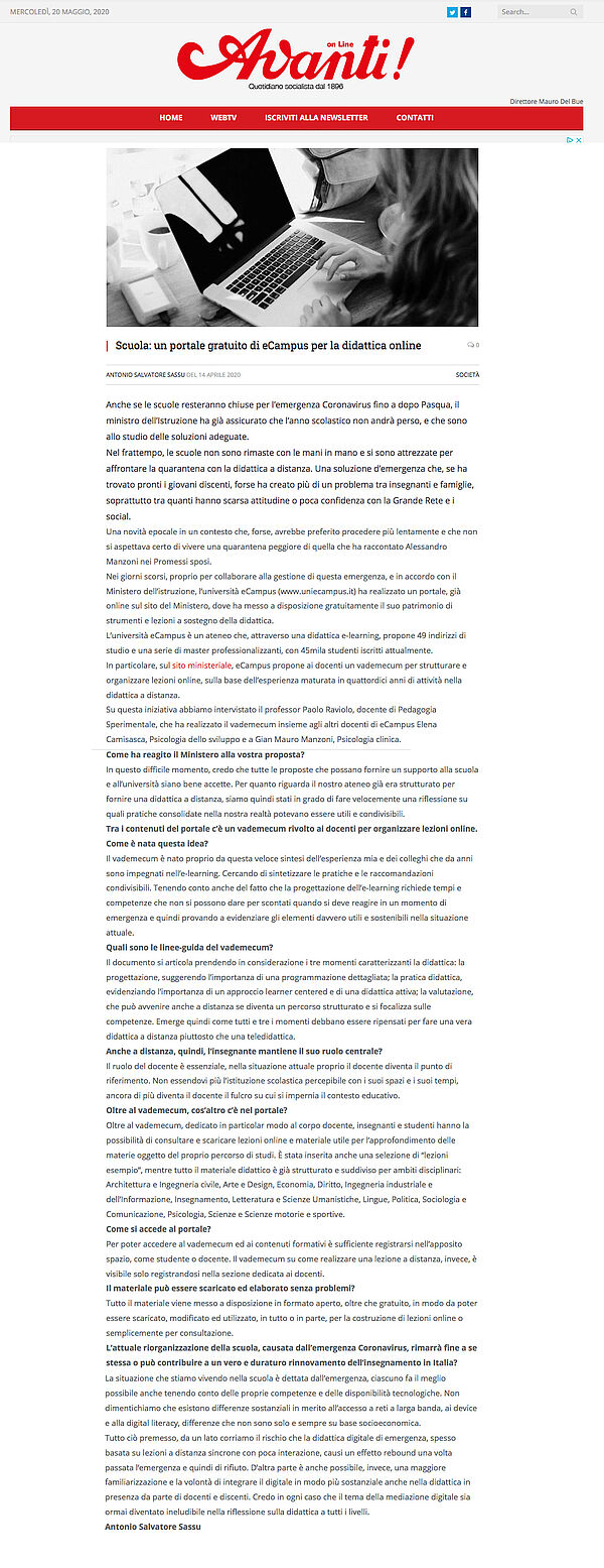AVANTI online - Scuola: un portale gratuito di eCampus per la didattica online